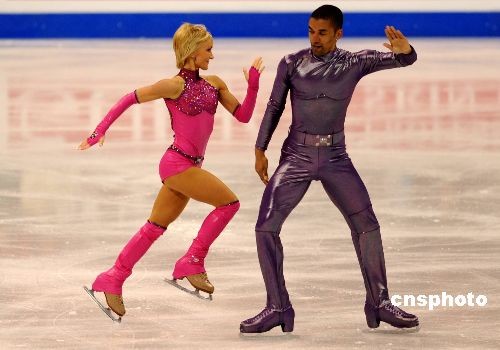 當(dāng)?shù)貢r(shí)間3月24日晚,2009年花樣滑冰世界錦標(biāo)賽在洛杉磯正式開幕。在當(dāng)天晚上舉行的雙人滑短節(jié)目比賽中,衛(wèi)冕冠軍德國(guó)組合薩維琴科和索爾科維充滿現(xiàn)代感的表演征服了全場(chǎng)觀眾和裁判,最終以72.30分的最高分名列第一。中新社發(fā) 張煒 攝