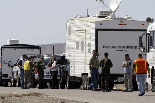 緊急行動小組準備進入飛機失事領域。