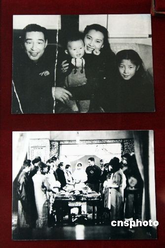 4月2日,上海福壽園“祭先烈、敬先賢、憶先人”清明月紀念展開幕,百余位建國英雄、名人精英、藝術大師的生平資料和實物史料亮相。圖為上世紀三十年代“電影皇帝”金焰與著名電影藝術家秦怡的結婚場景照(下圖)以及他們夫婦與孩子的合影(上圖)首次公開展覽。金焰,1910年出生于韓國漢城,代表作品《風流劍客》、《野草閑花》、《一剪梅》等。1948年金焰與秦怡結婚。1983年金焰離開人世。 中新社發 潘索菲 攝