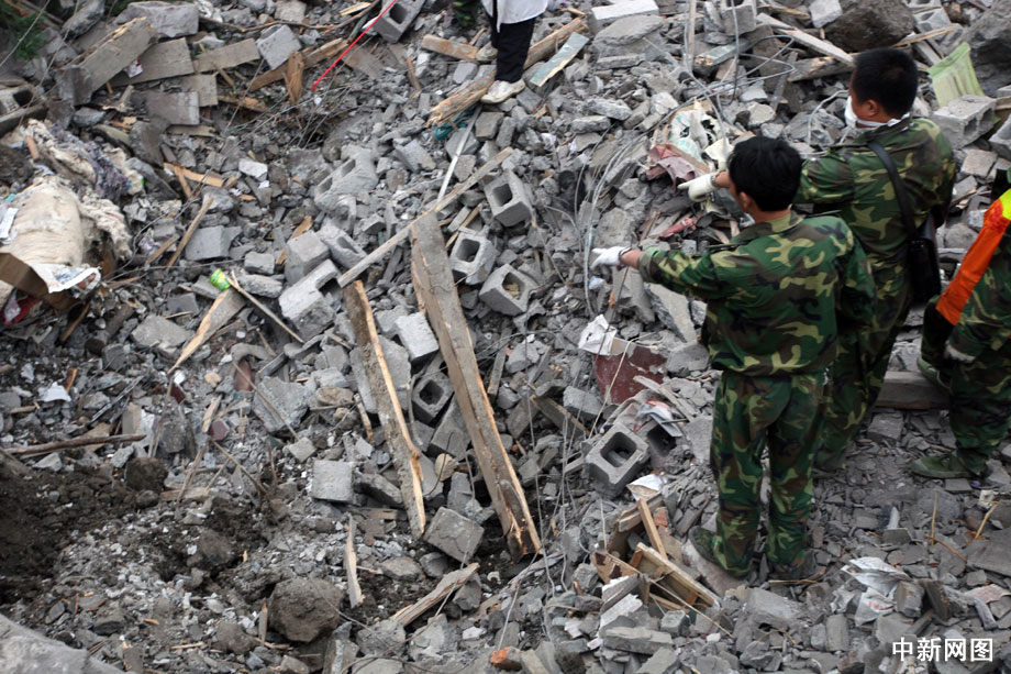 7日下午18時(shí)17分,在這所垮塌的民房中,救援人員發(fā)現(xiàn)一名遇難者遺體,隨后在旁邊又發(fā)現(xiàn)有遇難者遺體。救援人員現(xiàn)場(chǎng)還挖出一些衣物、被褥、書籍、賬本及保險(xiǎn)柜等。 曹多然 攝