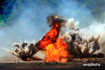 圖為運輸車隊火速突破炮火封鎖線。