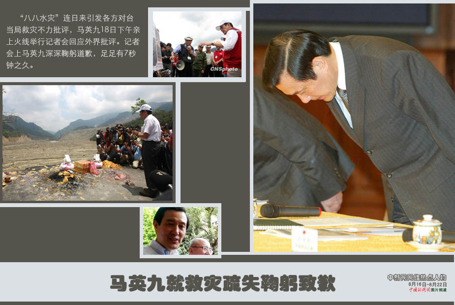 中新網本周熱點人物之——馬英九 馬英九也說,我要跟各位再道歉一次,我確實是來晚了,前一段時間我想來,但是上不來,現在我有時間來的話,一定把各位的訴求、各位的心聲,一定會好好來處理。