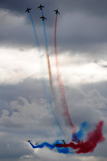 8月21日,在俄羅斯茹科夫斯基市舉行的第九屆國(guó)際航空航天展覽會(huì)上,法國(guó)著名的“法蘭西巡邏兵”飛行表演隊(duì)進(jìn)行了精彩的飛行表演。