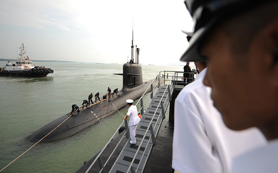 9月3日,由法國(guó)制造的馬來(lái)西亞首艘“鲉魚(yú)”級(jí)潛艇“東古·阿卜杜勒·拉赫曼”號(hào)駛?cè)腭R來(lái)西亞首都吉隆坡的克朗港。圖片來(lái)源:中國(guó)新聞網(wǎng)