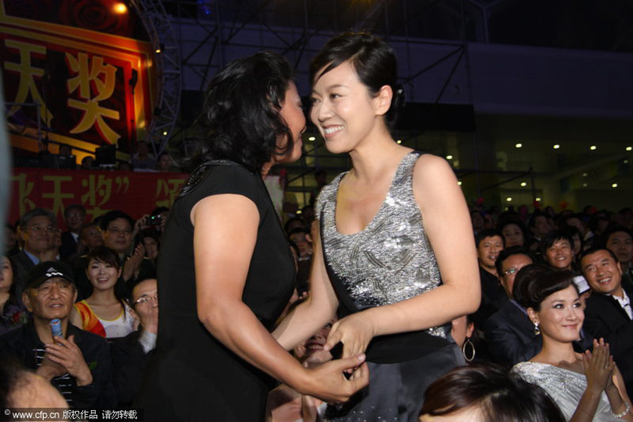 第二十七屆“飛天獎”9月8日在水立方落幕。閆妮、薩日娜,兩人也是因為優秀電視劇作品《北風那個吹》、《闖關東》而榮獲殊榮。圖片來源:CFP