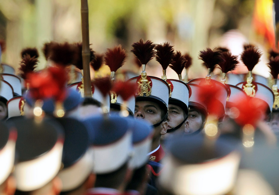 周一(10月12日),西班牙國慶節當天在馬德里舉行了隆重的閱兵慶典儀式,西班牙陸海空和警察部隊的3800多名官兵、200多輛戰車及50多架戰機參閱。圖片來源:中國新聞網