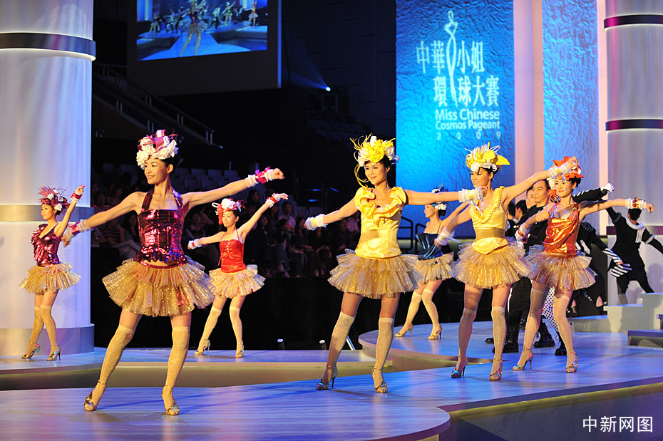 10月31日晚,“2009中華小姐環(huán)球大賽”總決賽上,12名入圍總決賽的佳麗身著迷你裙大秀性感爵士舞。中新網(wǎng)記者 金碩 攝