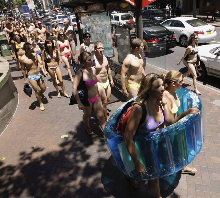 11月12日,約1000人身穿泳裝在悉尼街頭游行,欲打破287人近日在南非創造的最大規模泳裝游行的世界紀錄。
