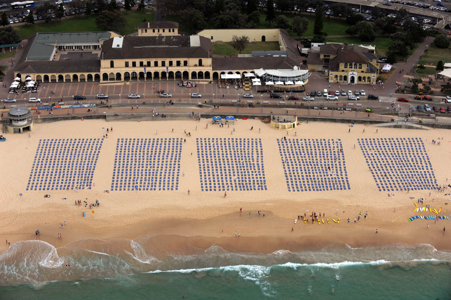 11月15日,悉尼癌癥理事會在邦迪海灘放置1700條浴巾“曬”日光浴,場面異常壯觀。希望通過此次活動提高人們對曬日光浴可能導(dǎo)致皮膚癌的認(rèn)識。圖片來源:中國新聞網(wǎng)