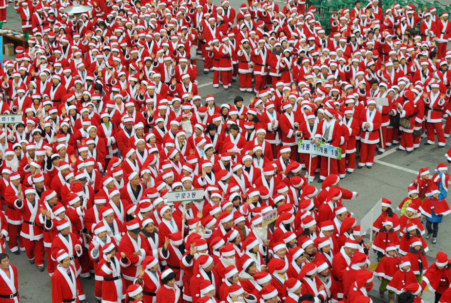 12月1日,韓國首都首爾市,一千多名“圣誕老人”舉行游行為社會慈善項目籌款。圖片來源:中國新聞網(wǎng)