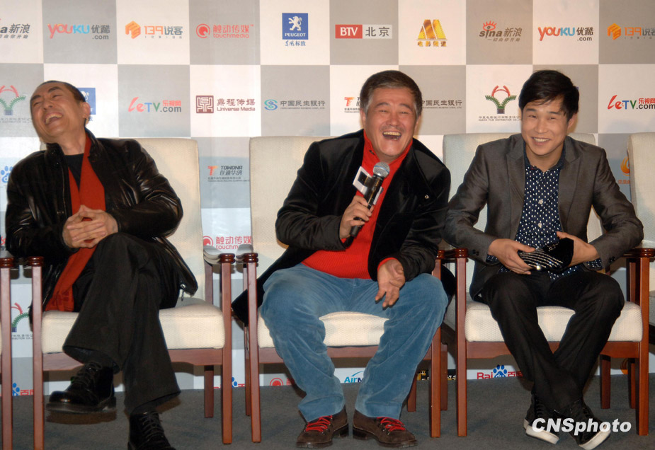 12月9日下午,張藝謀喜劇新作《三槍拍案驚奇》在京舉行首映發(fā)布會,導(dǎo)演張藝謀、大病初愈的趙本山攜孫紅雷、小沈陽、閆妮、倪大洪、程野、毛毛全明星主創(chuàng)團(tuán)隊(duì)齊齊亮相。現(xiàn)場張藝謀、趙本山、小沈陽搞笑不斷,引得爆笑連連,上演了一出戲外喜劇。趙本山首度回應(yīng)了花兩億購買私人飛機(jī)一事,稱還沒有定下來。張藝謀表示會和“趙家班”繼續(xù)深度合作,并且豪言預(yù)計未來的中國電影單部影片票房可能達(dá)到2億美元。圖為張藝謀、趙本山、小沈陽成為“笑彈”。中新社發(fā) 李學(xué)仕 攝