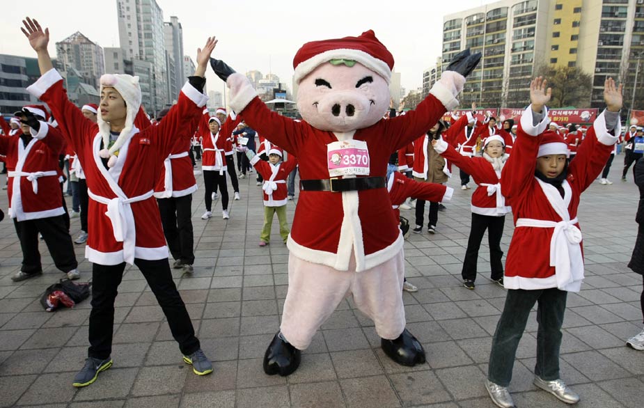 12月12日,“圣誕老人”馬拉松賽跑當日在首爾舉行。超過一千名“圣誕老人”參加了此次長跑活動。