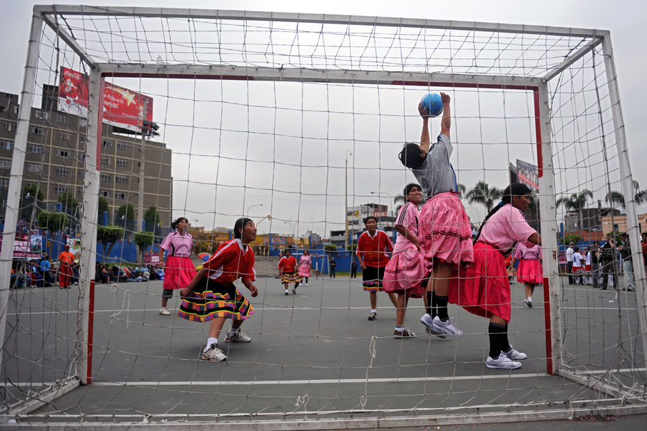 12月12日,秘魯印第安婦女在利馬國家體育場(chǎng)外舉辦了一場(chǎng)特別的足球賽,所有的球員均身著傳統(tǒng)服飾光腳上陣妙趣橫生。圖片來源:中國新聞網(wǎng)
