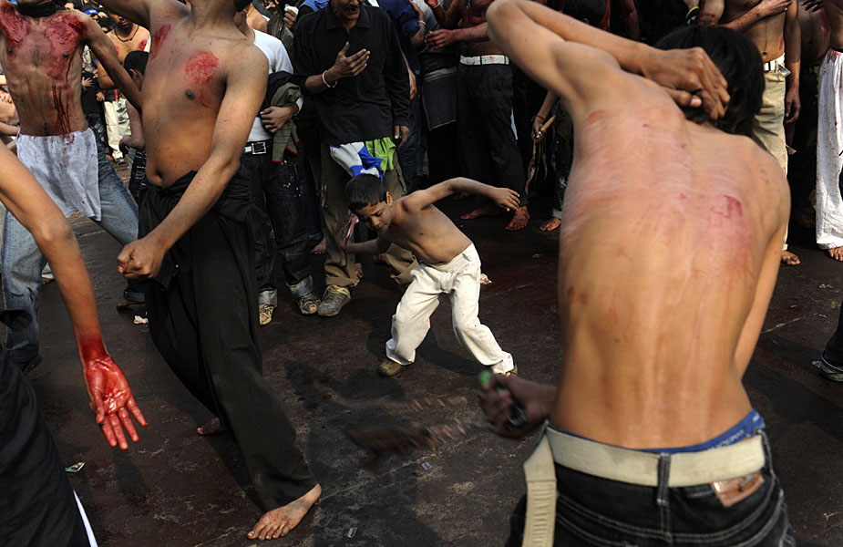 12月28日,印度穆斯林慶祝阿舒拉節(jié)。一些當(dāng)?shù)啬滤沽衷趦x式上用鐵鞭抽打自己,以此慶祝節(jié)日。圖片來源:中國(guó)新聞網(wǎng)
