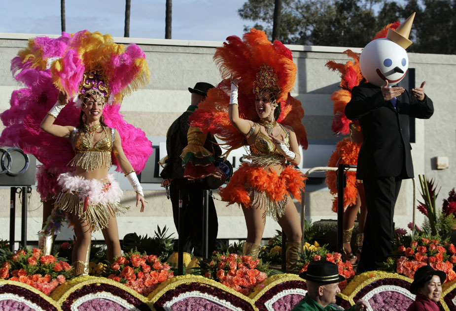 圖為美國第121屆玫瑰花車大游行現場。