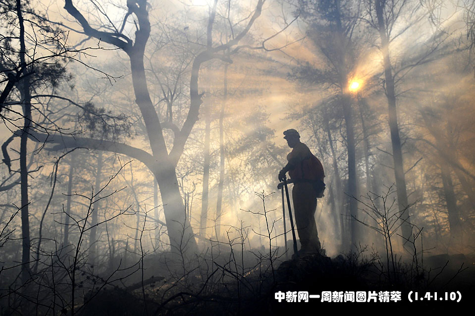1月6日(周三),一名工作人員在北卡羅來納州克勞德斯山國家公園一處焚燒現場觀察情況。官員們試圖將積累了數十年的森林垃圾焚燒掉,這些垃圾可能引發山火。圖片來源:中國新聞網