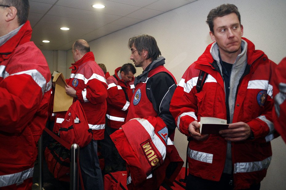 圖為比利時救援隊。海地發生強烈地震,傷亡慘重,國際社會在第一時間紛紛伸出援手。中國、美國、法國等多個國家和地區的救援隊已集結完畢,奔赴海地地震災區。圖片來源:中國新聞網