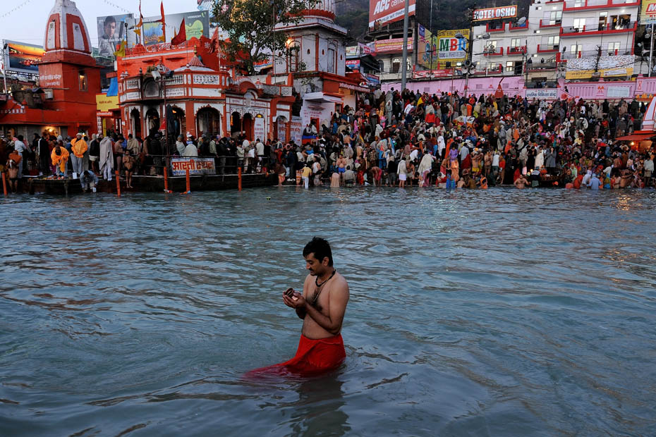 1月14日,數千名印度教信徒前往恒河參加世界上最大的宗教集會大壺節,并在印度圣河——恒河進行了沐浴儀式。圖片來源:中國新聞網
