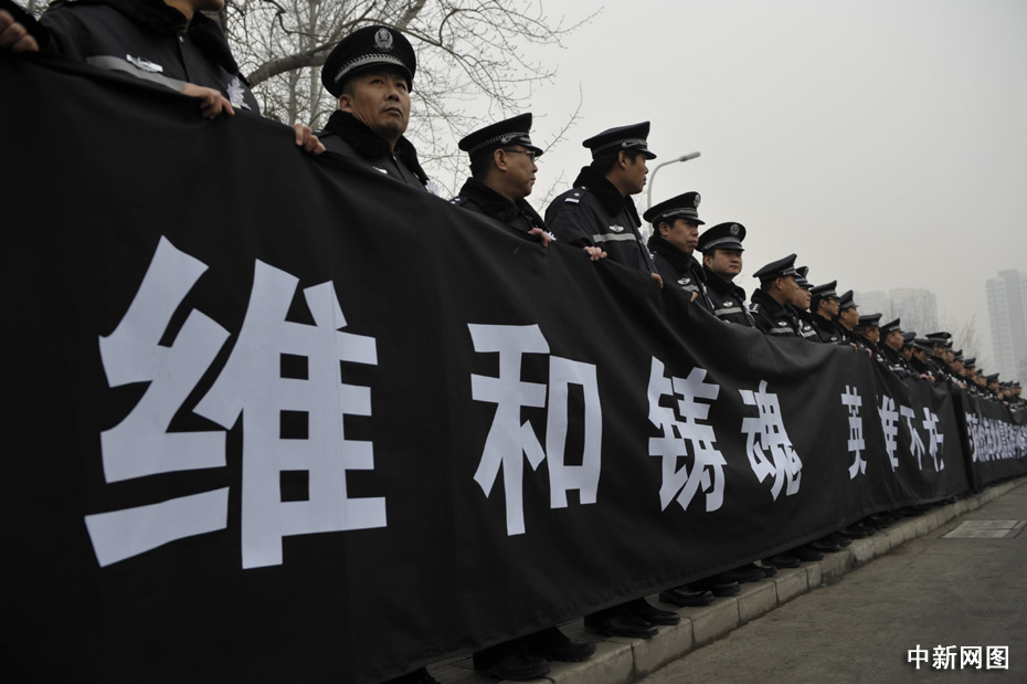 1月19日,北京民眾自發(fā)守候在通往北京八寶山殯儀館的路口迎接英烈的靈柩。當日,八位海地地震遇難中國維和警察的靈柩搭乘專機將抵達北京。中新網(wǎng)記者 金碩 攝
