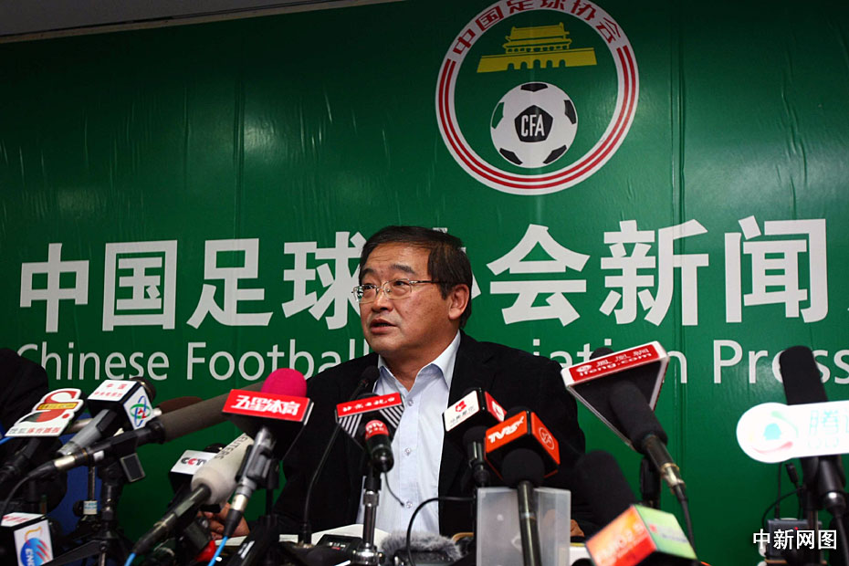 圖為中國足協新任掌門人韋迪召開首個新聞發布會現場。中新社記者 富田 攝