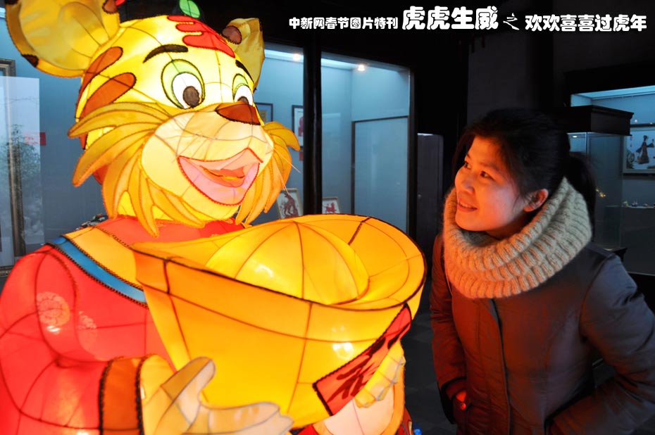 2月3日,一名游客在南京民俗博物館舉辦的“虎年民間藝術(shù)大展”上觀賞“虎燈”。此次大展展示了云錦、剪紙、金箔、燈彩等20個(gè)門類50多名藝術(shù)家和傳承人的近百件民間虎文化作品。據(jù)了解,虎年民間藝術(shù)大展4月5日結(jié)束。 中新社發(fā) 谷昌旺 攝