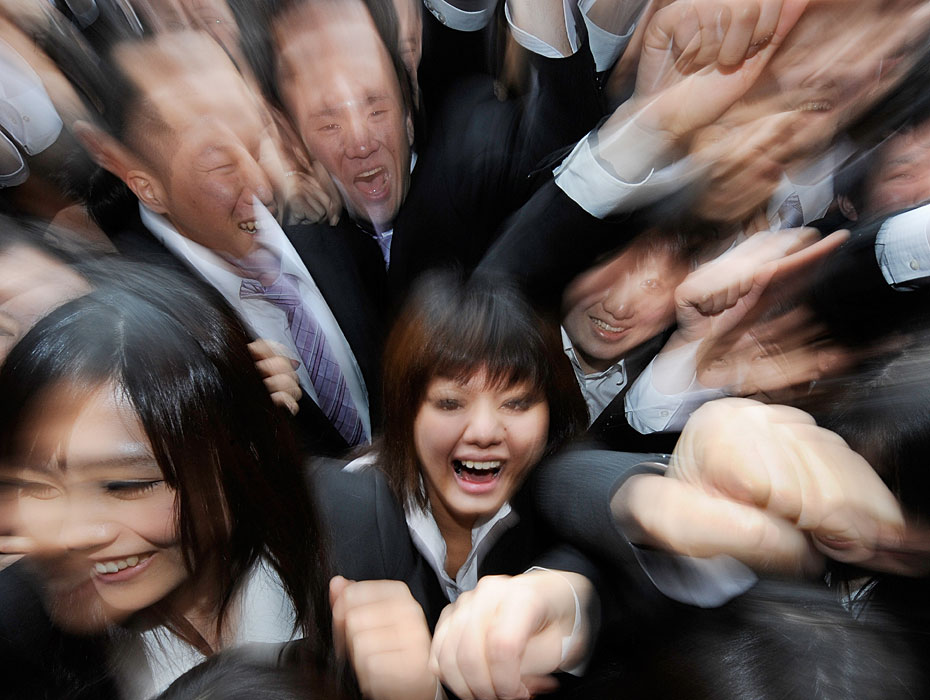 2月10日,日本東京職業(yè)學校的學生在求職動員會上伸出拳頭展現(xiàn)信心。日本的失業(yè)率達5%,2011屆畢業(yè)生將面臨嚴峻就業(yè)形式。圖片來源:中國新聞網(wǎng)
