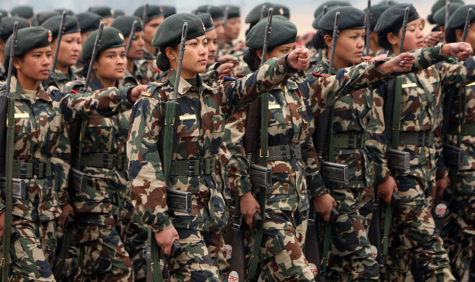 當(dāng)?shù)貢r間2月12日,尼泊爾士兵在首都加德滿都舉行了建軍節(jié)閱兵式。尼泊爾總統(tǒng)和總參謀長檢閱了受閱部隊。圖片來源:中國新聞網(wǎng)