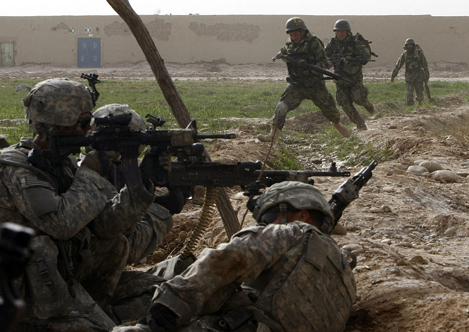 以美國為主的北約與阿富汗盟軍對阿南部城市馬爾賈的清剿活動14日進入了第二天。隨著巷戰展開,交火愈加頻繁和激烈。圖片來源:中國新聞網