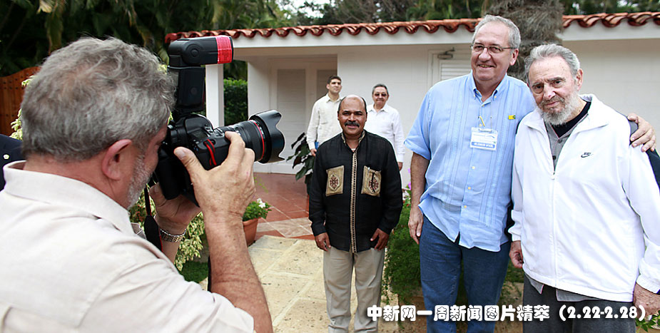 24日(周三),在古巴哈瓦那,巴西總統盧拉手持相機為巴西交通部部長和前古巴領袖卡斯特羅(Fidel Castro)拍照。