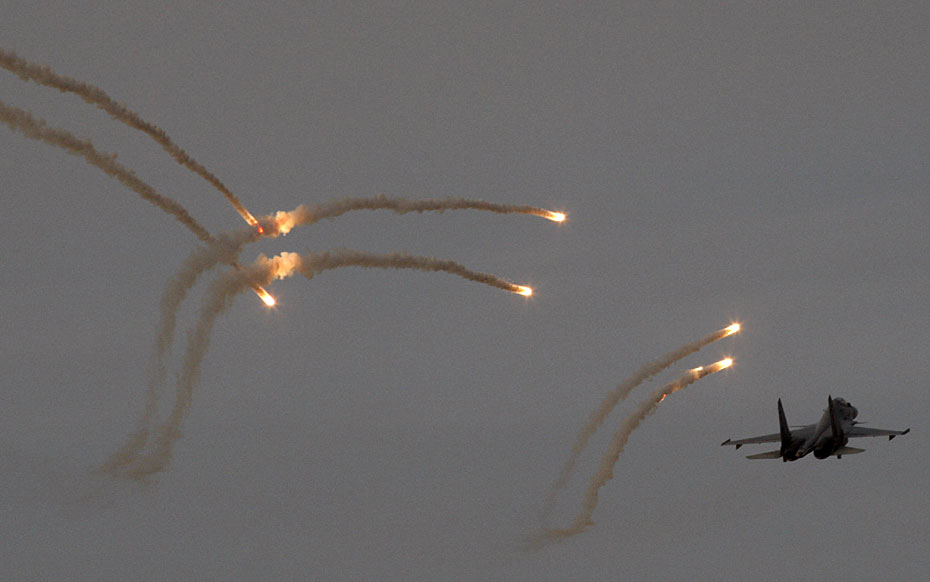 2月28日,印度空軍在該國(guó)西部地區(qū)舉行大規(guī)模空中火力展示演習(xí),出動(dòng)了包括“費(fèi)爾康”空中預(yù)警機(jī)、蘇-30戰(zhàn)斗機(jī)、米格-29戰(zhàn)斗機(jī)、幻影-2000戰(zhàn)斗機(jī)、伊爾-76運(yùn)輸機(jī)和米-35武裝直升機(jī)等約百架戰(zhàn)機(jī)。圖片來(lái)源:中國(guó)新聞網(wǎng)