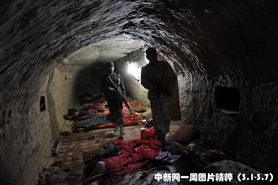 3月2日,巴基斯坦士兵離開達馬多拉的一處洞穴,這里曾是塔利班的一個重要軍事指揮部。巴基斯坦軍方稱,在擊斃75名境內外恐怖分子后,他們奪取了塔利班-基地組織在靠近阿富汗邊境的一處重要據點。圖片來源:中國新聞網