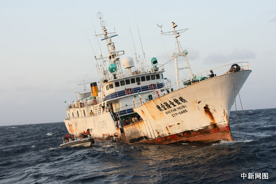09年4月在西印度洋遭索馬里海盜挾持的臺灣遠洋漁船“穩(wěn)發(fā)161號”,歷經(jīng)各方營救,終于在遭挾持10個多月后,包括船長顏勝男等共28人返回高雄港。圖片來源:中國新聞網(wǎng)