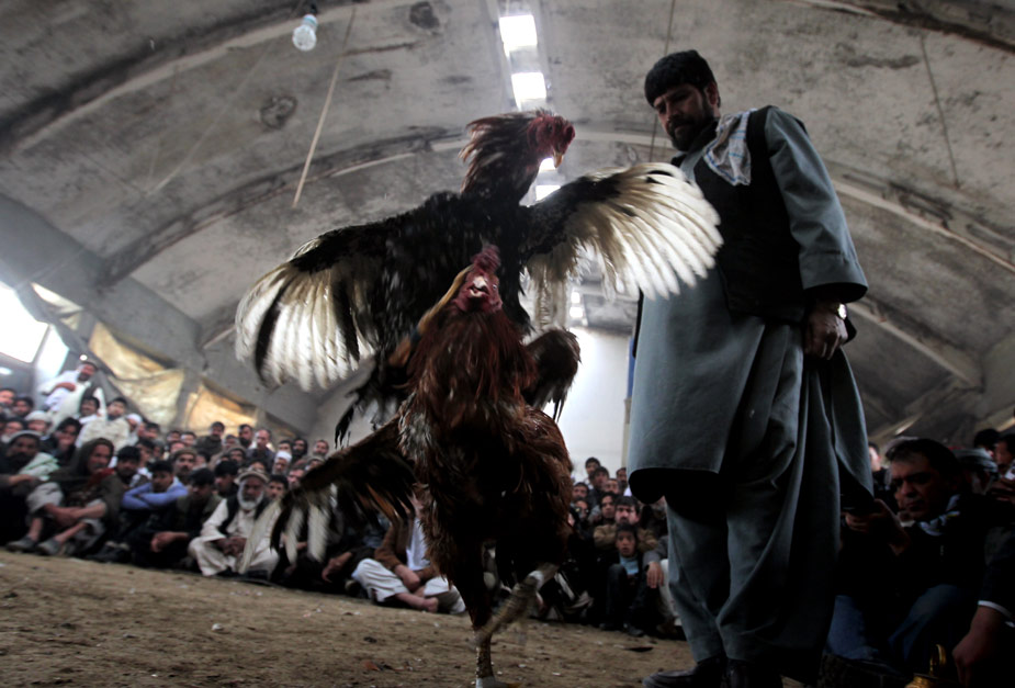 當地時間3月12日,在阿富汗首都喀布爾,觀眾們正在觀看傳統的斗雞比賽。圖片來源:中國新聞網