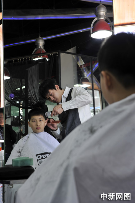 3月17日,北京,一個小朋友在一家美發店理發。中新網記者 金碩 攝