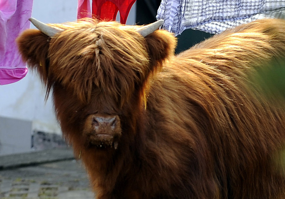 3月18日,德國一頭蘇格蘭高地牛來到一居民院內懶洋洋的曬太陽,最后經過獸醫的麻醉和消防員協力才將這頭蠻力十足的家伙“制服”。圖片來源:中國新聞網