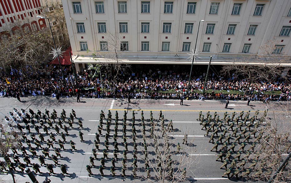 3月25日,在希臘首都雅典的憲法廣場,人們參加獨立戰爭紀念日慶;顒印D片來源:中國新聞網