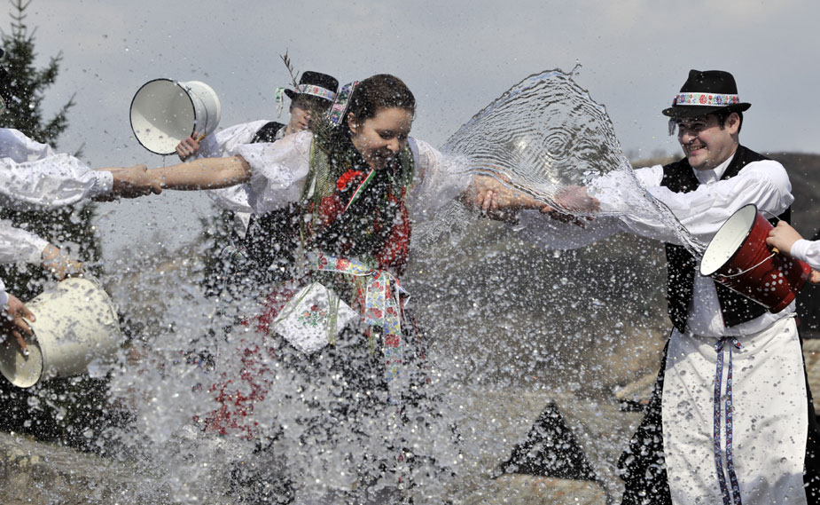 3月26日,在匈牙利首都布達佩斯以東被譽為世界文化遺產的霍洛克村,當地居民以向姑娘身上潑水的傳統儀式慶祝復活節。此項古老習俗起源于公元2世紀。