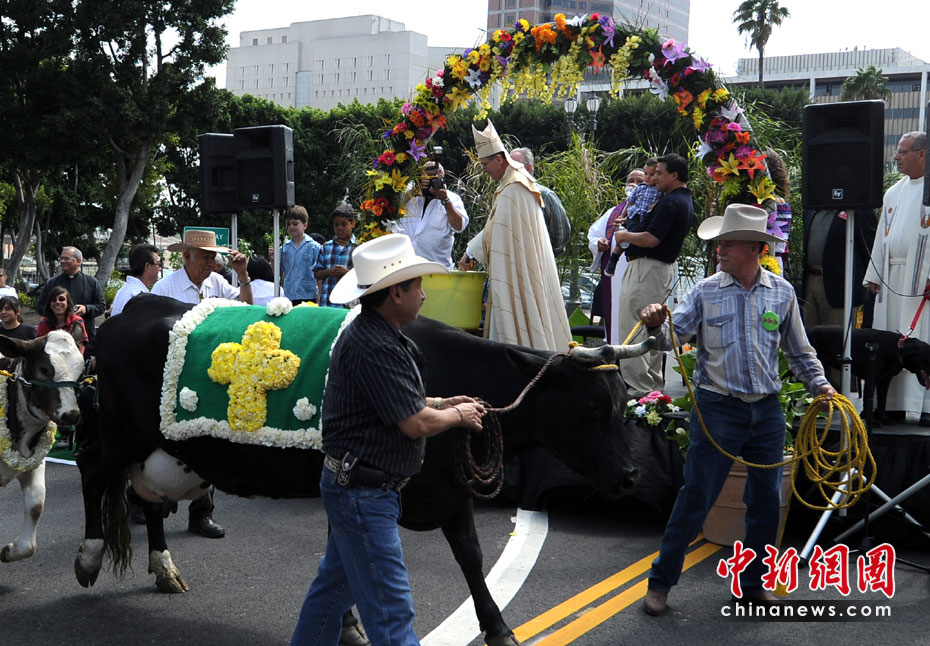 當(dāng)?shù)貢r(shí)間4月4日,美國洛杉磯人們?cè)跉g慶復(fù)活節(jié)的同時(shí),也為他們的寵物舉行了祝福儀式。這項(xiàng)祝福儀式每年舉行一次。圖片來源:中國新聞網(wǎng)