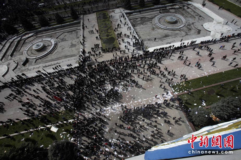 吉爾吉斯斯坦7日發(fā)生大規(guī)模騷亂,反對派示威者占領(lǐng)了議會大樓,8日,總統(tǒng)府也被示威者占領(lǐng)。圖為示威者聚集在總統(tǒng)府門前。