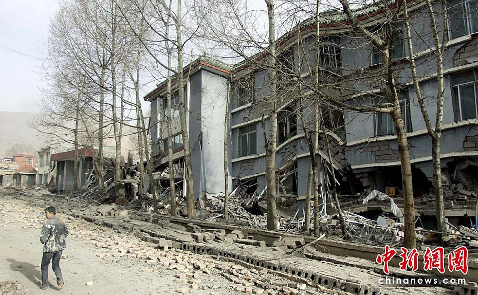 圖為4月14日,地震災后的玉樹縣縣城結古鎮。中新社發 張守國 攝