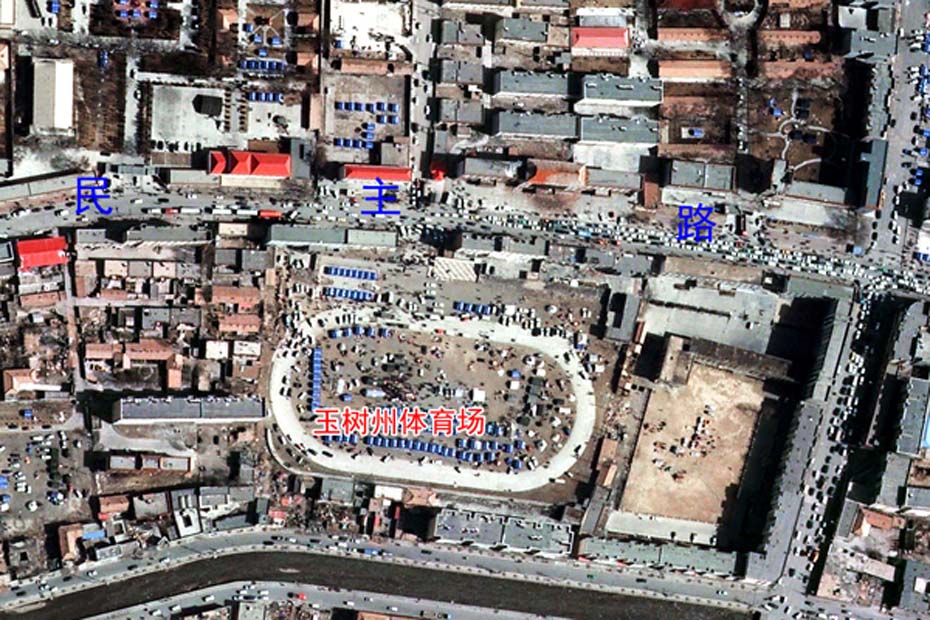 災(zāi)后體育場〔由中國科學院對地觀測與數(shù)字地球科學中心拍攝〕