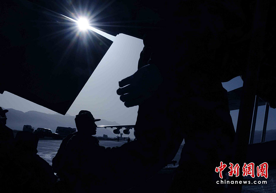 4月18日清晨6時 (賈國榮)天蒙蒙亮,中新社和中新網(wǎng)從北京增援采訪青海玉樹7.1級強烈地震的記者組,趕赴到成都某空軍機場,搭乘中國空軍伊爾-76重型運輸機037機群呼嘯起飛。