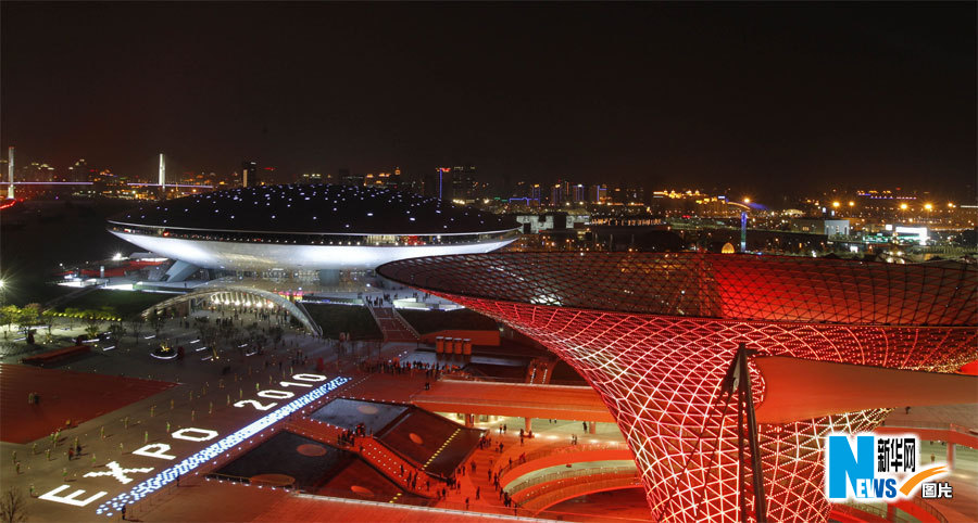 上海世博園區眾多場館亮燈