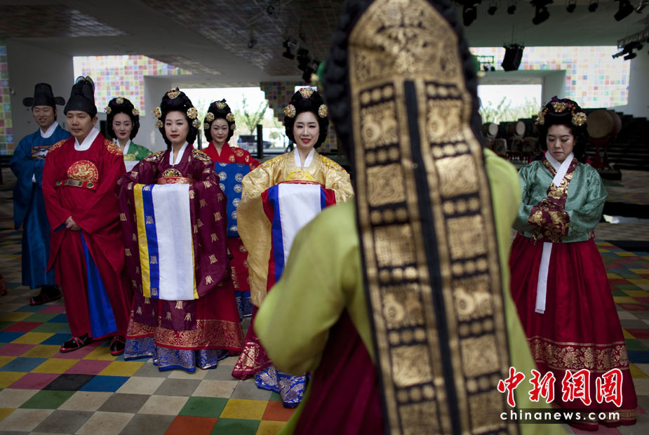 5月1日,上海世博會(huì)正式開(kāi)園迎客,首批游客入園參觀。圖為在韓國(guó)館內(nèi)接待人員靜候前來(lái)參觀的游客。