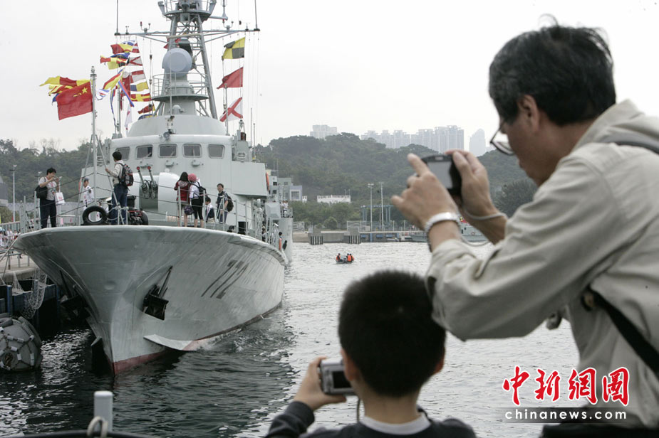為慶祝“五一”國際勞動節(jié),進一步增進與香港社會各界相互溝通與交流,中國人民解放軍駐香港部隊5月1日在昂船洲軍營舉辦開放日活動,開放兩艘導護艇和兩艘登陸艇供市民自由參觀。中新社發(fā) 張勤 攝