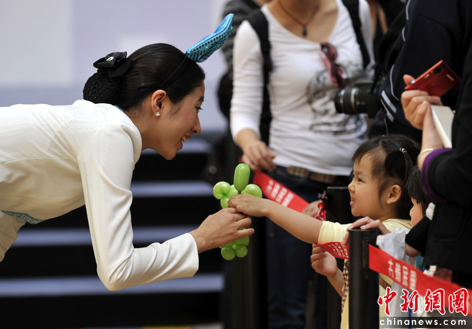 溫柔美麗的韓國(guó)館禮儀小姐。中新網(wǎng)記者 王紅綱 攝