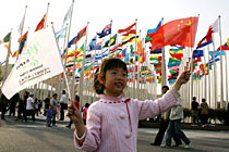 5月2日,上海世博會是第一個正式提出“低碳世博”理念的世博會,圍繞著這樣的理念,上海世博園區內的低碳元素比比皆是。圖為印度館內竹制的世界最大穹頂,這個竹制穹頂上方是小型風力發電裝置和太陽能電池板,為整個場館提供綠色清潔能源。中新社發 湯彥俊 攝