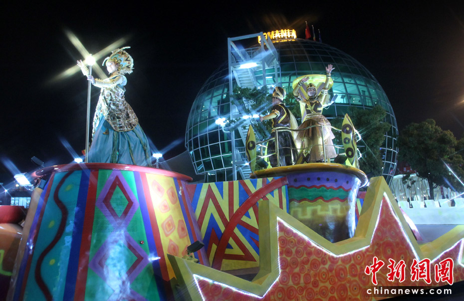 世博盛裝夜巡游 花車美女盡顯異域風(fēng)情