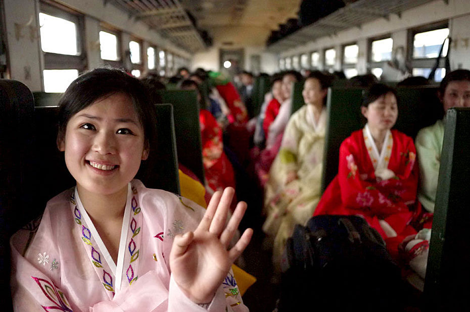 5月2日,載著198名朝鮮紅樓夢劇組演員的專列駛?cè)氲|口岸。由朝鮮國家級藝術(shù)團(tuán)-血海歌劇團(tuán)創(chuàng)作的歌舞劇《紅樓夢》將于5月6日至9日登陸北京電視臺大劇院,這個(gè)超大演員陣容亦創(chuàng)下近年來華國外演出人數(shù)之最。圖片來源:新華網(wǎng)