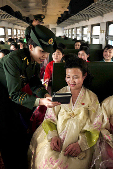 5月2日,載著198名朝鮮紅樓夢劇組演員的專列駛?cè)氲|口岸。由朝鮮國家級藝術(shù)團-血海歌劇團創(chuàng)作的歌舞劇《紅樓夢》將于5月6日至9日登陸北京電視臺大劇院,這個超大演員陣容亦創(chuàng)下近年來華國外演出人數(shù)之最。圖片來源:新華網(wǎng)